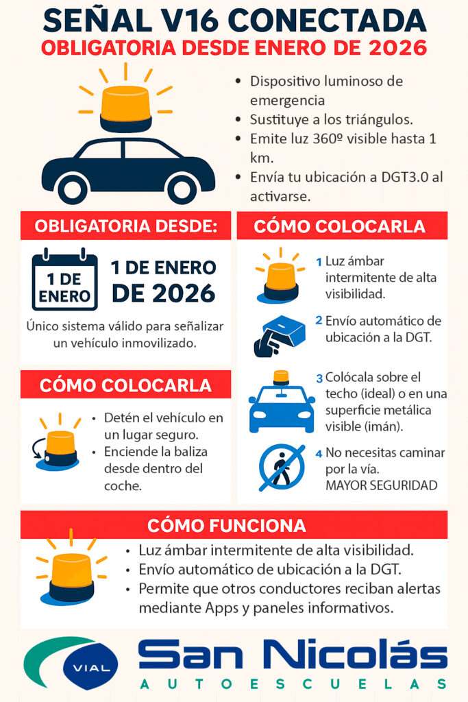 Desde el 1 de enero de 2026, será obligatorio que los turismos, vehículos mixtos, automóviles de mercancías y autobuses matriculados en España lleven una baliza V16 conectada homologada.