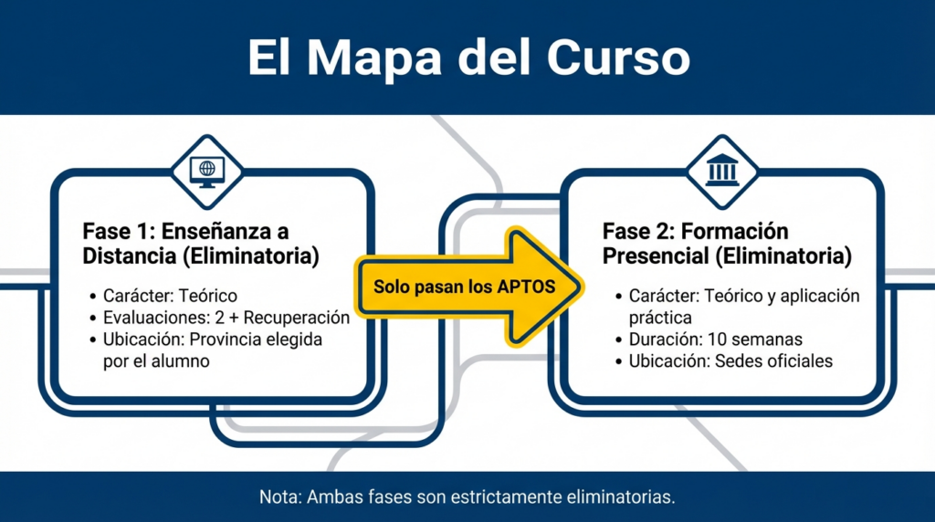 El curso se divide en dos fases eliminatorias:
